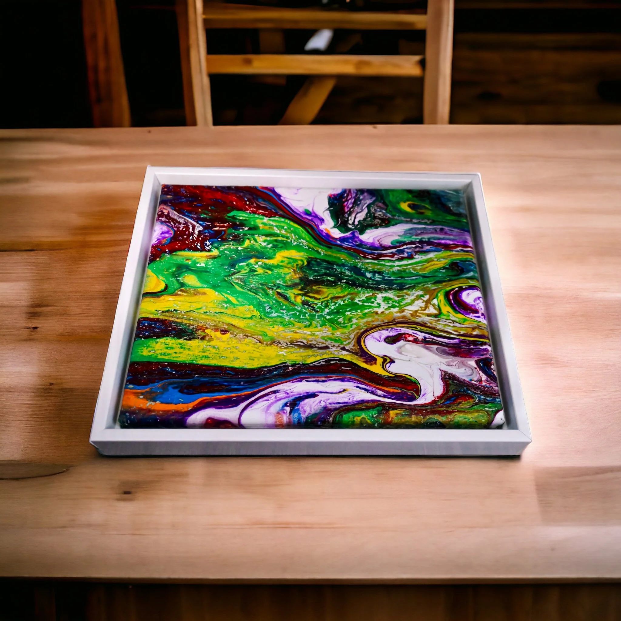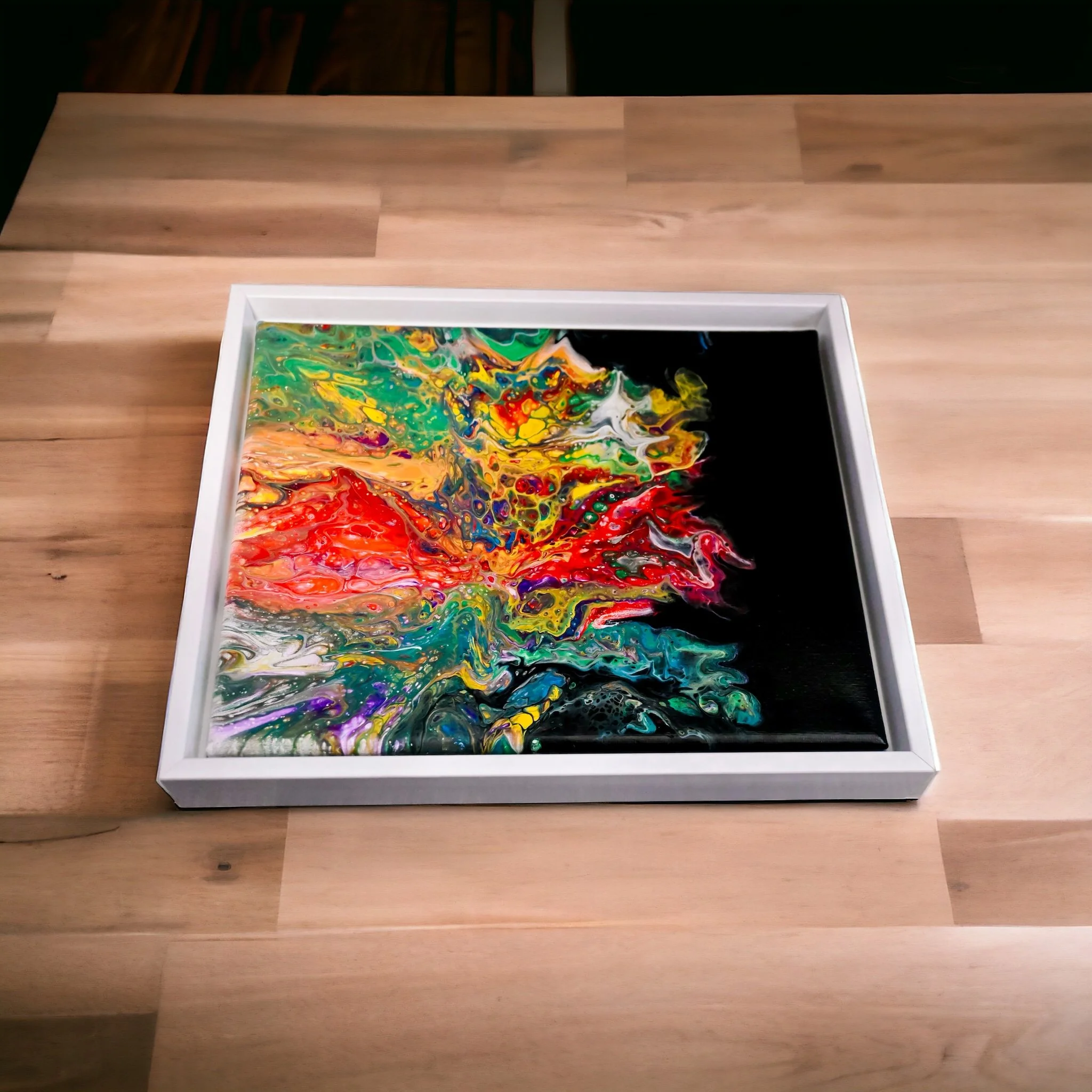 Acrylic Paint Pouring is a fluid painting technique used to create art by pouring acrylic paint onto a canvas. No two pictures will ever be the same!